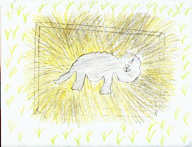 the dinosaur has three horns. The triceratops wasn't a helpful animal.